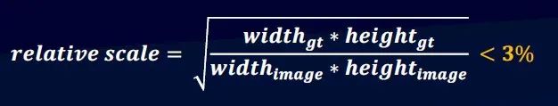 因此,我们给出相对的定义,物体标注框的长宽乘积,除以整个图像的长宽乘积,再开根号,如果结果小于3%,就称之为小物体。