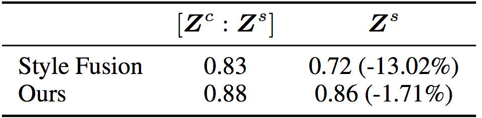 ])预测的准确率下降了13.02%,证明相当一部分风格信息依赖于内容表示