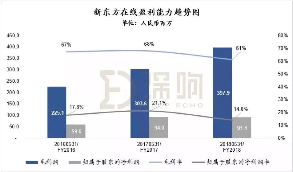 「新东方在线」的净利率从21.1%掉到了14.0%