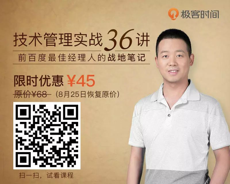 不管你愿不愿相信,对于互联网技术人来说,“带团队”不再是一个可选项,而是迟早都要面对的事儿。推荐极客时间《技术管理实战 36 讲》专栏,前百度最佳经理人刘建国为你解惑团队 leader 的 36 个场景,传授打造高效团队的 13 种方法,分享十年管理的“战地笔记”。
