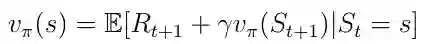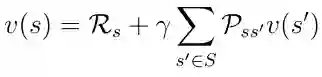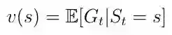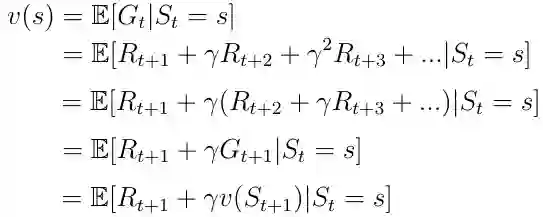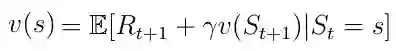 另一个重要的概念是价值函数v(s)之一。 价值函数将值映射到每个状态s。 状态s的值被定义为AI主体在状态s中开始其进展时将获得的预期总奖励(等式6)。