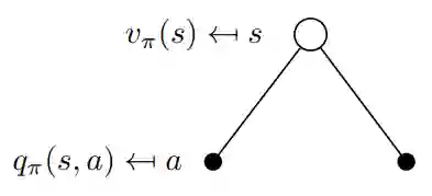 在这一点上,我们讨论v(s)和q(s,a)如何相互关联。 这些函数之间的关系可以在图中再次可视化:
