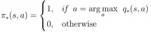 为了找到最好的策略,我们必须在 q(s,a)上最大化。 最大化意味着我们只从所有可能的动作中选择动作a,其中q(s,a)具有最高值。 这为最优策略 π 产生以下定义: