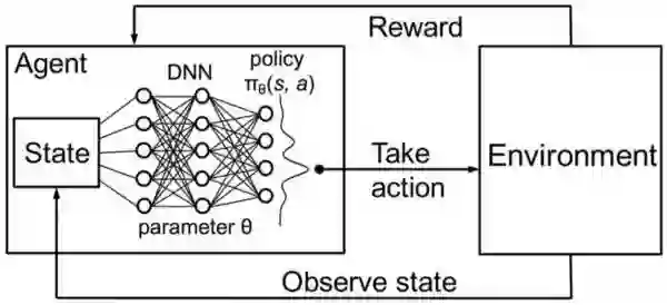 深度强化学习可以概括为构建一个直接从与环境的交互中学习的算法(或AI主体)(图5)。 环境可能是现实世界,计算机游戏,模拟甚至是棋盘游戏,如Go或国际象棋。 就像人类一样,AI 主体从其行为的后果中汲取灵感,而不是明确地教导。