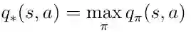 深度强化学习中最重要的主题是找到最优的动作 - 价值函数q *。 查找q *表示主体确切地知道任何给定状态下的动作的质量。 此外,主体可以决定必须采取哪种行动的质量。 让我们定义q *的意思。 最佳的动作值函数是遵循最大化动作值的策略的功能: