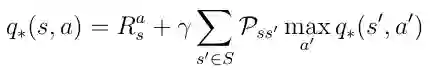 如果AI主体可以解决这个等式,那么它基本上意味着解决了给定环境中的问题。 主体在任何给定的状态或情况下都知道关于目标的任何可能行动的质量并且可以相应地表现。