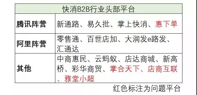 上述B2B平台,另有国资老大哥怡亚通,以及仍未站队的中商惠民等,基本就是现在行业的头部力量。