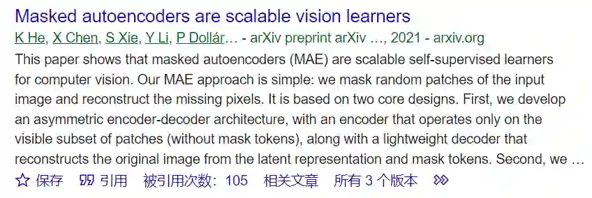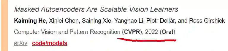 Amusi 前不久注意到 MAE 这篇工作已收录到 CVPR 2022 (Oral),代码已开源,github star 数量已突破3.3k!
