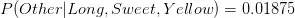 因为0.252大于0.01875,Naive Bayes 会把长形,甜的还是黄色水果分到香蕉的一类中。