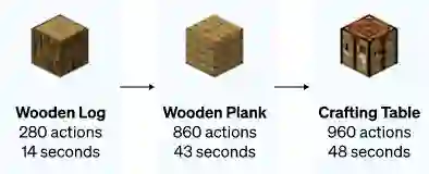 制作一把钻石鹤嘴锄需要一长串复杂的子任务。为了使这个任务易于处理,该研究会奖励序列中的每一项智能体。