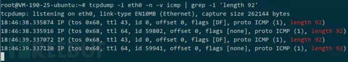 第四步, 在 VPS 上查看到大小为 92 的 ICMP 包: