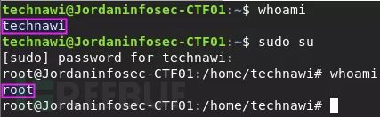 最后,用 technawi 自己的密码切换为 root 用户: