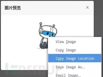 找寻文件路径。上传 webshell 后肯定要访问,势必得晓得文件写入路径,通常上传成功后,路径将回显在应答中,但该站并无回显,但好在它是个图片,所以,在页面右键即可查看文件路径: