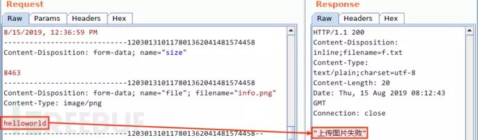 上传失败,文件内容是唯一变更的地方,那么,我可以合理猜测服务端要么检测了文件内容是否存在脚本代码,要么检测了文件头是否为图片类型。