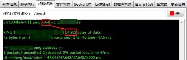 第一步,虽然我指定了 ping 包大小,但实际大小由系统确定,先在目标上执行 ping 命令,获取实际包大小: