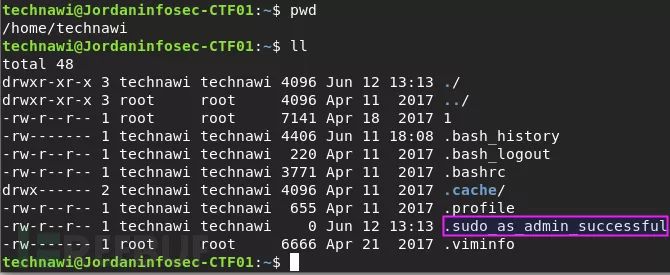 然后,发现 home/ 中存在 .sudo_as_admin_successful 文件: