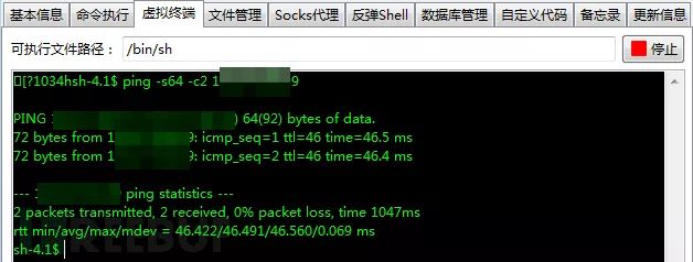 通过冰蝎在目标上执行反弹命令: