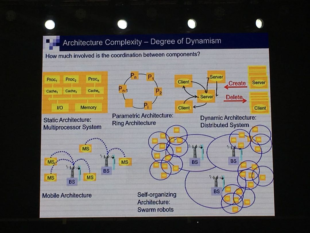 现在,我们来谈一谈构架的复杂度。我刚刚谈到了构架,我在这个领域已经工作多年。图中的构架都是完全静态的,其中,有最简单的构架,也有最复杂的构架。