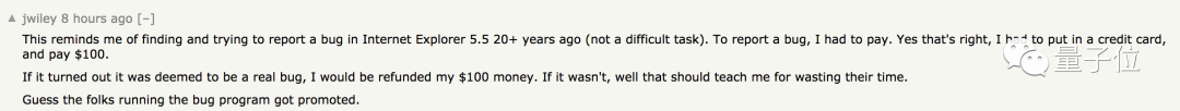早在20年前IE5浏览器上线时,要报告bug,必须要用信用卡支付100美元定金。