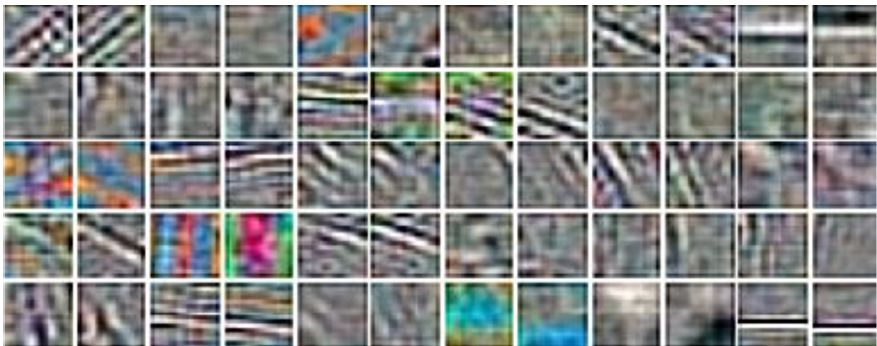 训练得到的基向量的可视化结果如图 3 所示,左边是表观信息滤波器,右边是运动信息滤波器。可以看出表观信息滤波器可以学到一些类似边缘检测的滤波器,这样类型的滤波器对图像的水平边沿和垂直边沿能进行检测,从而提取良好的轮廓纹理信息。右边的运动信息滤波器学到了一些类似 Gabor 滤波器的滤波器,这样的滤波器对运动信息更加敏感,实现对运动信息进行良好的提取。