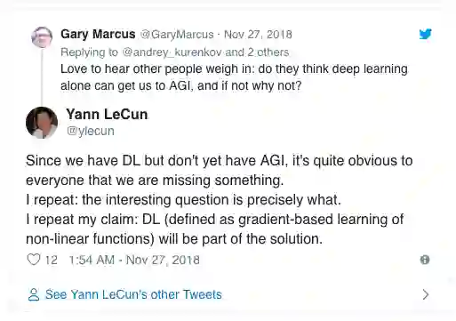 其实回顾人工智能几十年的历史,技术在发展的同时,又往往免不了各个派系之间的争辩,而每一次的争辩,都不免会有一些看上去不切实际,甚至完全没有逻辑支撑的构想,或者产生一些完全断章取义的攻击,它们或是想要提出一个努力的目标,或是单纯想打败对面的立场,或是仅仅就是想保持自己研究方向的讨论热度,毕竟讨论趋势到了,这个方向才能有各方面的支撑继续发展下去。