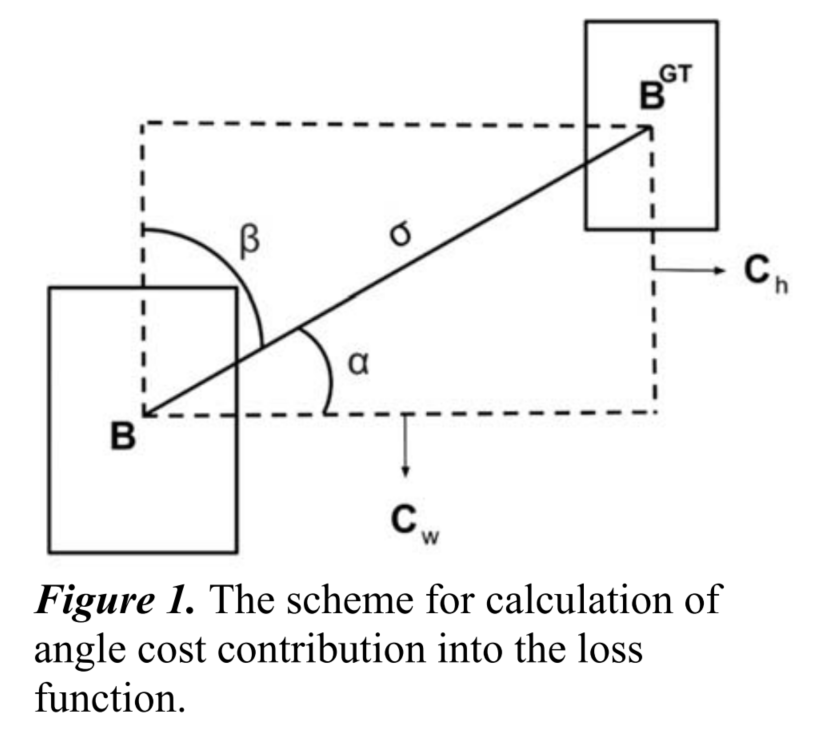 最近 Rezatofighi 等人声称Generalized IoU (GIoU) LF优于其他标准 LF 的最先进的目标检测方法。虽然这些方法对训练过程和最终结果都产生了积极影响,但作者认为仍有很大改进的空间。因此,与用于计算图像中真实框和模型预测框不匹配的惩罚的传统指标并行——即距离、形状和 IoU,本文作者建议还要考虑匹配的方向。这种添加极大地帮助了训练收敛过程和效果,因为它可以让预测框很快地移动到最近的轴,并且随后的方法只需要一个坐标 X 或 Y 的回归。简而言之,添加Angle惩罚成本有效地减少了损失的总自由度。
