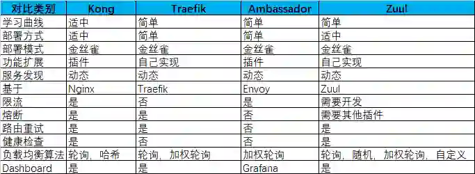 介绍了几个开源 API 网关的基本信息以后,我们从几个维度对他们进行比较: