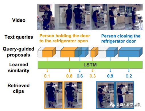 在基于文本的视频活动检索问题的基础上,给定一个描述活动的句子,我们的任务就是从未修剪的视频中检索匹配剪辑。好比CV中视频中人脸的检索,都是很重要的技术之一。