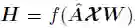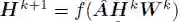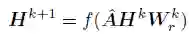 其中W表示模型的参数,f表示激活函数,可以认为H对图中每个结点的直接邻居进行了编码。如果要获得多跳的信息,可以用多层的GCN,如下: