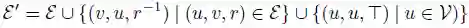 然后对边进行扩展。简单来说,就是对所有边添加一条反向边,并为每个结点添加一条指向自己的边:
