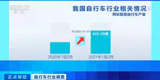 国内自行车产量在近两年飞速增长