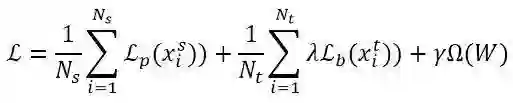 我们的方法采用了类似于由 (S+T) 路的 softmax 分类器的全监督分类模型,用来分类目标类和源类。但是,只有源类数据是有标注的,目标类数据没有标注。我们定义了准全监督损失函数来训练提出的模型: