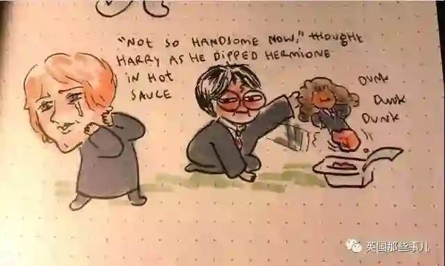 『现在不那么帅气了。』哈利一边想着,一边用赫敏蘸了蘸辣酱。
