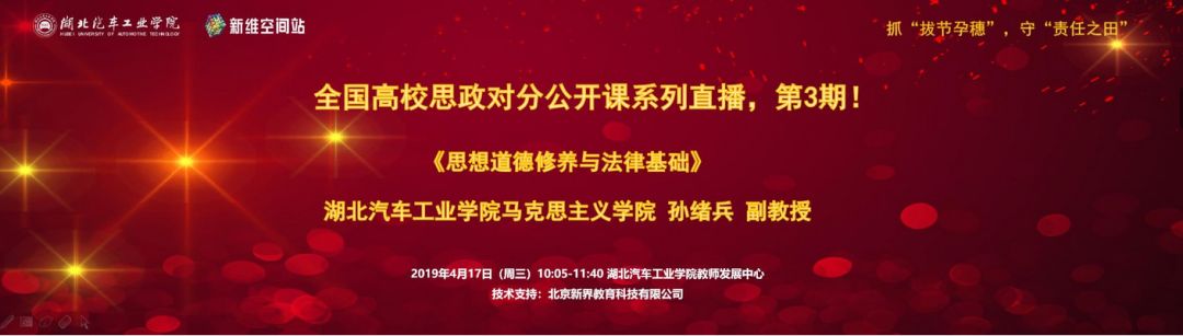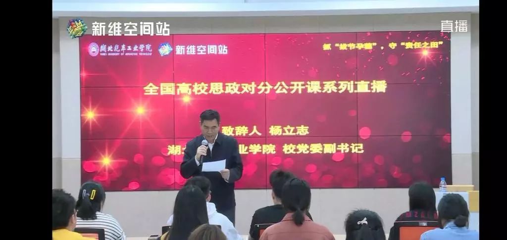 习近平总书记在学校思想政治理论课教师座谈会上强调:“办好思想政治理论课关键在教师,关键在发挥教师的积极性、主动性、创造性。”为深入贯彻落实习近平总书记在学校思想政治理论课教师座谈会重要讲话精神,2019年4月17日上午10点05分至11点40分,全国高校思政课对分公开课(第三期)在湖北汽车工业学院教师发展中心1305开播。马克思主义学院副教授孙绪兵担任主讲人,法学18级64名学生参与课程直播。马克思主义学院副院长黄永昌主持,校党委副书记杨立志致辞。