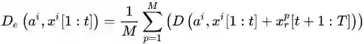,我们使用当前的 Generator,强制固定这个前缀,并重复生成出 $M$ 个完整的序列(有点采样实验的意思),分别交给鉴别器 D 进行打分,这 M 个模拟样本的平均奖励得分即为部分序列