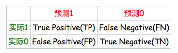考虑一个二分问题,即将实例分成正类(positive)或负类(negative)。对一个二分问题来说,会出现四种情况。如果一个实例是正类并且也被 预测成正类,即为真正类(True positive),如果实例是负类被预测成正类,称之为假正类(False positive)。相应地,如果实例是负类被预测成负类,称之为真负类(True negative),正类被预测成负类则为假负类(false negative)。