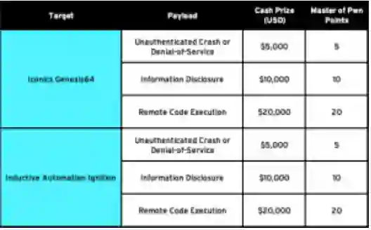 宅客频道了解到,Pwn2Own Miami为以下五个ICS类别的漏洞提供了各种奖励: