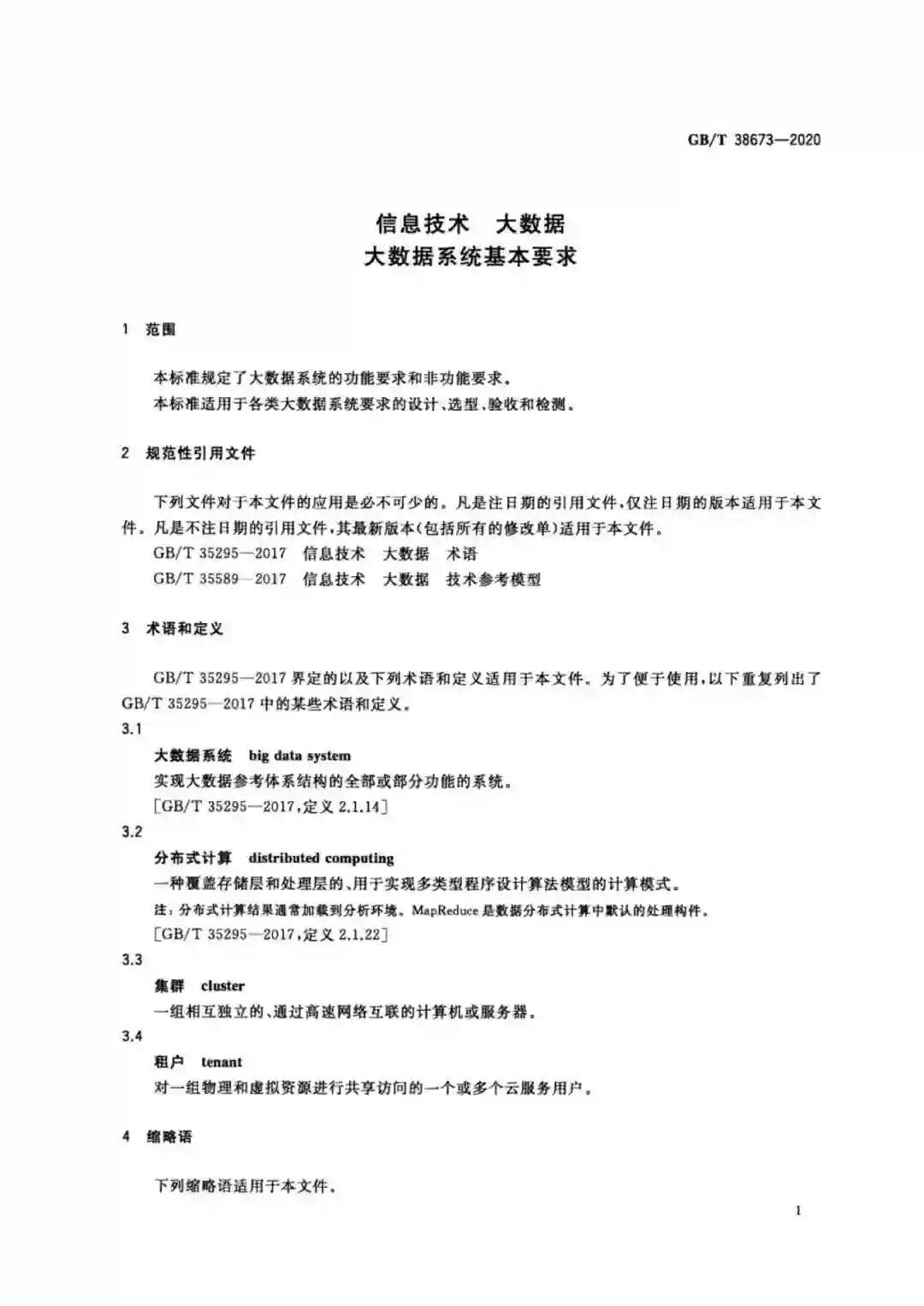 《信息技术大数据系统基本要求》国家标准,本文件本文件规定了大数据系统的功能要求和非功能要求,本标准适用于各类大数据系统要求的设计、选型和验收与检测。