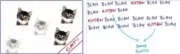 假设我去识别出左边这个方框里的猫,实际上在一张图片中猫所处的位置并不重要,它在左边,在右边,还是在底部,其实对于猫来说,它的特征是不变的,我需要在这一部分位置学习的特征也能用在另一部分位置上,所以对于这个图像上的所有位置,我们都能使用同样的学习特征。而在右边的例子中,假设一句话中是谈论猫咪的,猫咪这个词的意义是否会随它在第一句话还是第二句话而发生改变呢,大部分情况是不变的,所以我们当我们使用一个文本网络时,网络能够学习到什么是猫咪并且可以重复使用,而不是每一次见到它就要重新学习。