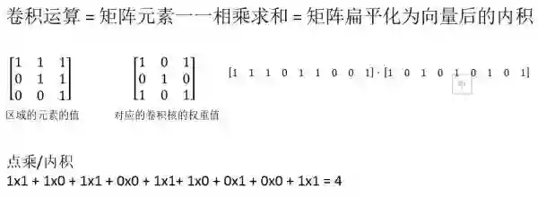 滑动窗口又称作卷积核、滤波器或是特征检测器。图中使用3x3的卷积核,将卷积核与矩阵对应的部分逐元素相乘,然后求和。对于卷积的运算可以看下面这幅图的解释。