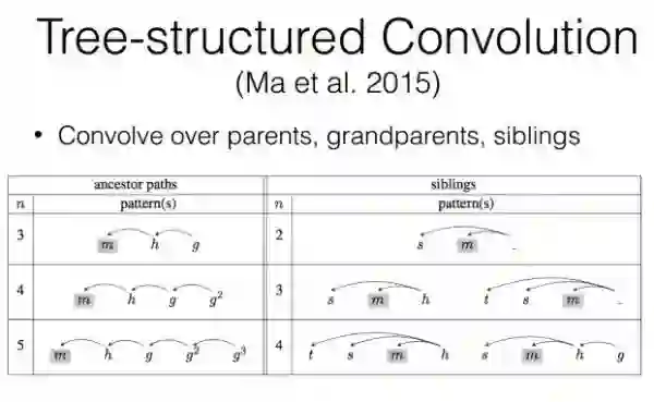 之前的论文中主要是对卷积层和池化层从本身结构上进行改造,下面的这篇论文主要考虑到了本身句子已有依存句法树信息,将其融入到句子的建模中来。论文《Dependency-based Convolutional Neural Networks for Sentence Embedding》便是提出这一想法,模型的想法是,不仅仅是利用句子中相邻的词信息作为特征信息,一个依存句法树的实际上将句子的语义信息关系真正地提取出来,由于整个卷积的过程,句子的语序关系仍然会丢失,通过将依存句法树中父子节点的语序信息和兄弟语序信息一起作为输入,可以更加有效地抽取句子的特征。