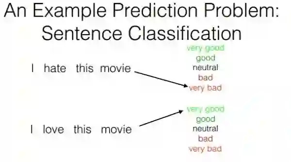 传统的词袋模型或者连续词袋模型都可以通过构建一个全连接的神经网络对句子进行情感标签的分类,但是这样存在一个问题,我们通过激活函数可以让某些结点激活(例如一个句子里”not”,”hate”这样的较强的特征词),但是由于在这样网络构建里,句子中词语的顺序被忽略,也许同样两个句子都出现了not和hate但是一个句子(I do not hate this movie)表示的是good的情感,另一个句子(I hate this movie and will not choose it)表示的是bad的情感。其实很重要的一点是在刚才上述模型中我们无法捕获像not hate这样由连续两个词所构成的关键特征的词的含义。