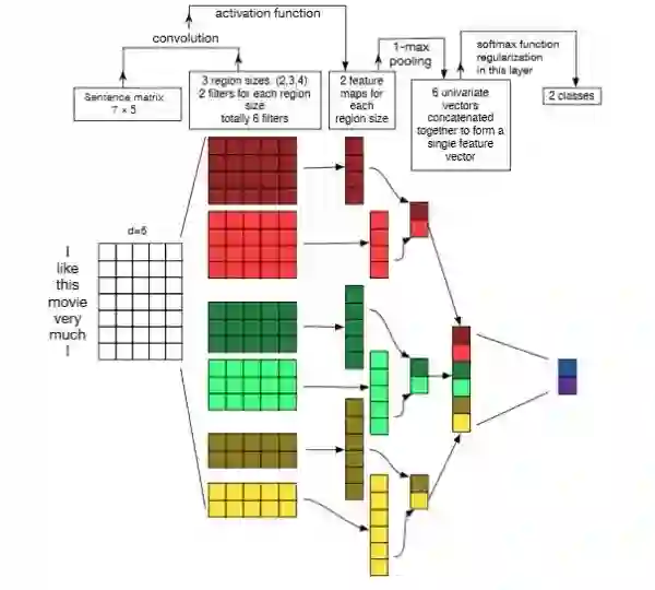 图片引用自《A Sensitivity Analysis of (and Practitioners’ Guide to) ConvolutionalNeural Networks for Sentence Classification》Ye Zhang, Byron Wallace