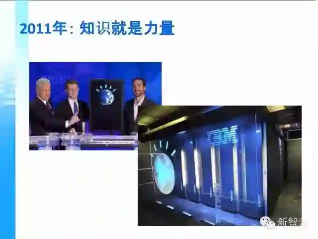 紧接着的阶段是,知识就是力量,这是随着互联网和大数据到来的一个热潮,从网上,从不同的媒体我们会获得很多数据,把这些数据经过沉淀变成知识,我们就可以赢得像这样一个电视大赛中的人机对战。