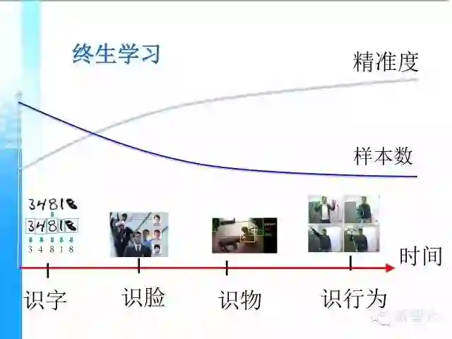如果我们达到了迁移学习的要点,我们想问下一步是不是可以把所有人类经历过的这些学习任务给沿着时间轴串起来,能够让机器像人一样,学习能力和智能随时间在不断增长。那么它所需要学习的努力程度,样本数也是逐渐减少的。这也是我们在努力的一个方向。