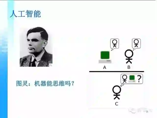 首先大家都知道,在60周年之际,我们首先应该记住的是这位人工智能的先驱——图灵。在他的问题的感召下,我们才有了今天这样的一个盛会和今天人工智能的飞速发展。他的问题“机器可以思维吗?”可以从不同的维度来解释,那么首先人类对人工智能的探索也可以围绕对[这个]问题的不同解释展开。