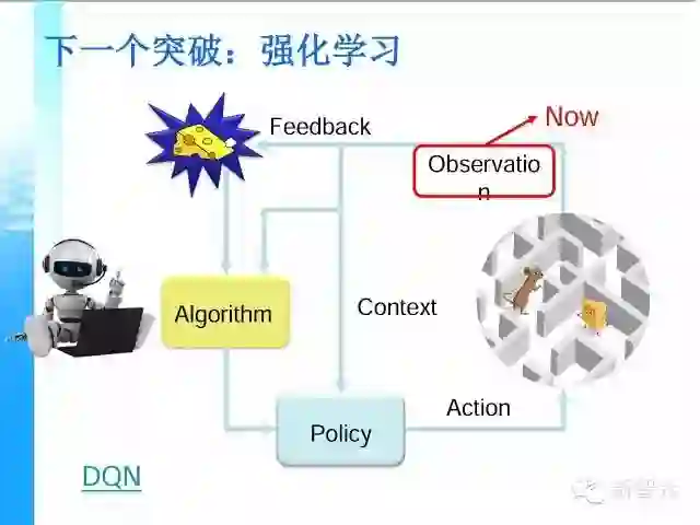 这里我们要特别强调的是人工智能也在另外一个方面默默在耕耘,这个就叫做强化学习。强化学习应该说是用来做人工智能规划的有力工具,但不是唯一的工具。这个领域相对深度学习应该说更古老,研究的力度也很多。但在很长时间处于静默状态,这个原因是因为它在计算上有很大的瓶颈,不能有很大的数据量。一个例子就是强化学习在很长时间以来只能解决一些玩具型的问题,非常小的数据。