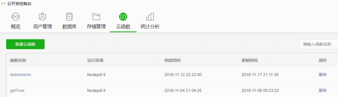 // 云函数接口名就是创建的云函数名字,这里是'getTime'