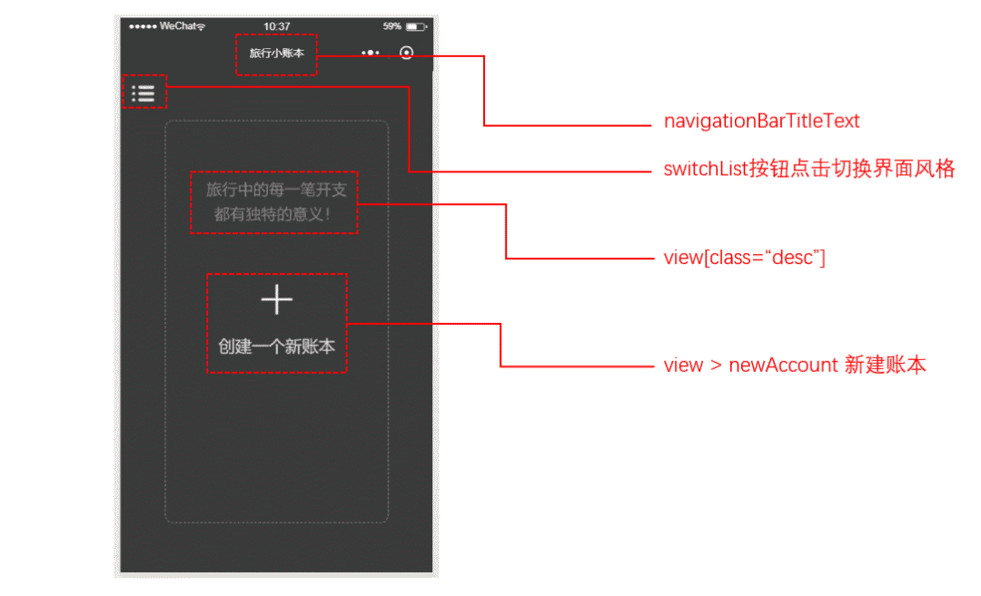接下来对每个页面的细节进行解构,并完成简单的WXML结构: