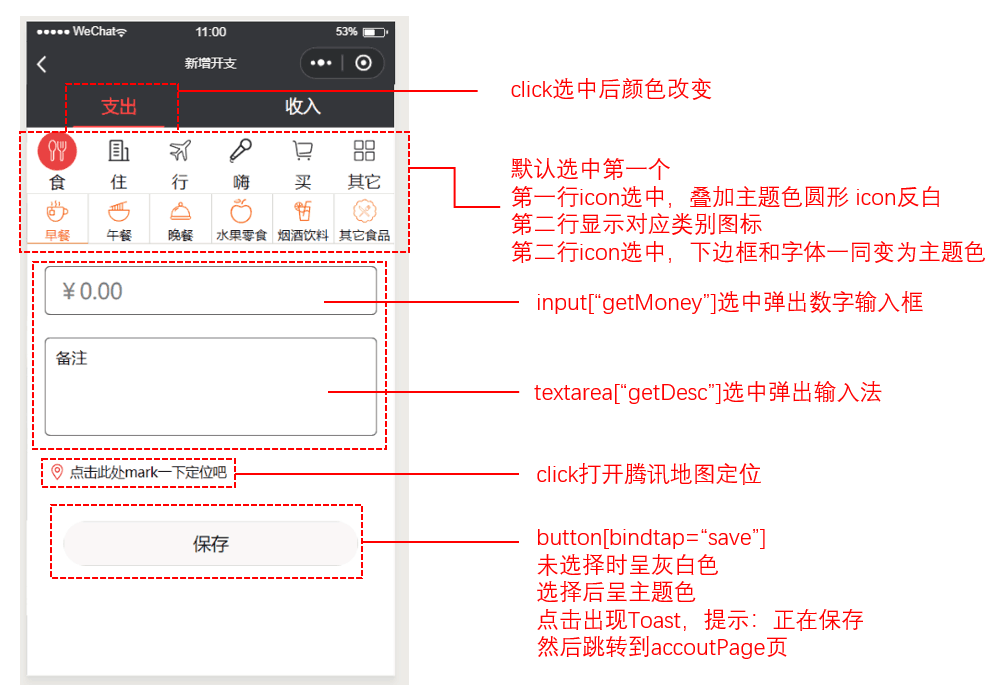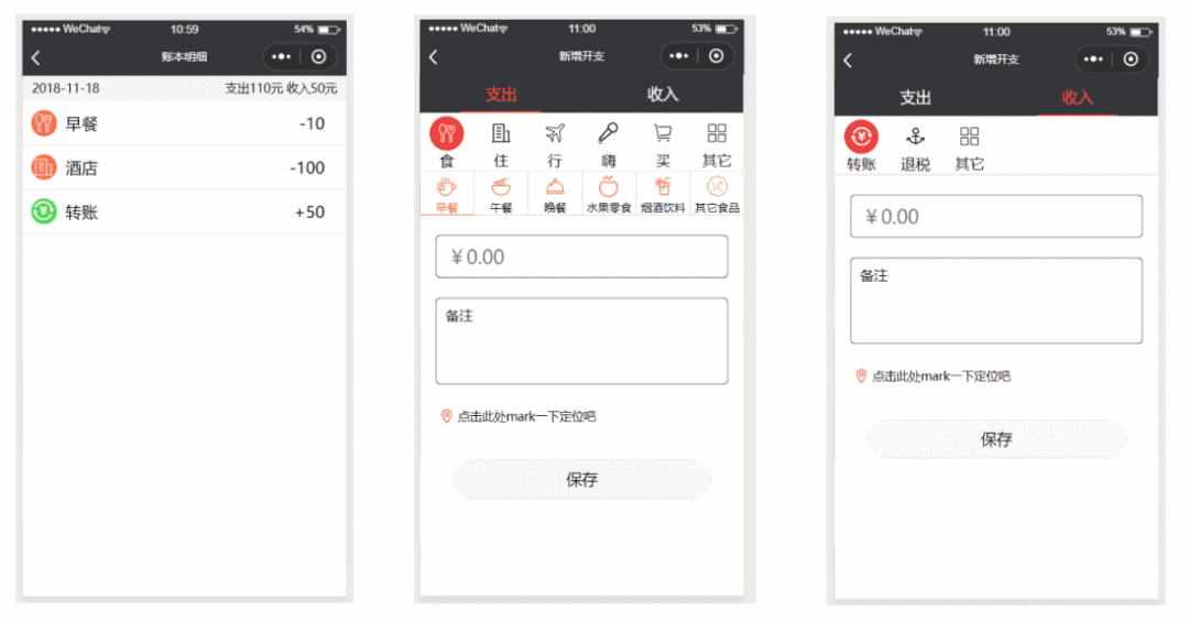 因为收入与支出页面基本类似,所以使用自定义组件封装,可以复用,具体看源码。